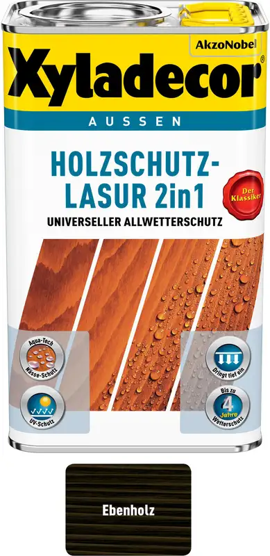 La lasure de protection du bois 2-en-1 ébène mat de XYLADECOR combine protection et entretien en une seule couche. Elle protège le bois à l'extérieur de manière fiable contre les intempéries, les rayons UV et l'humidité, tout en accentuant et en sublimant la veinure naturelle du bois.