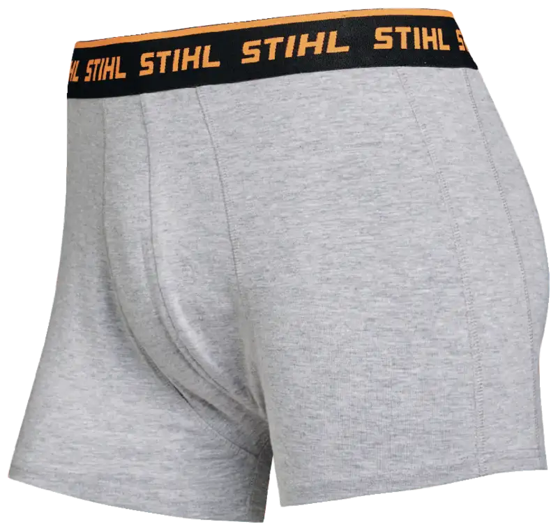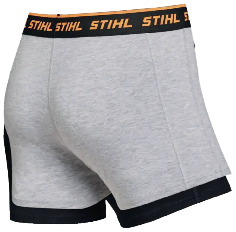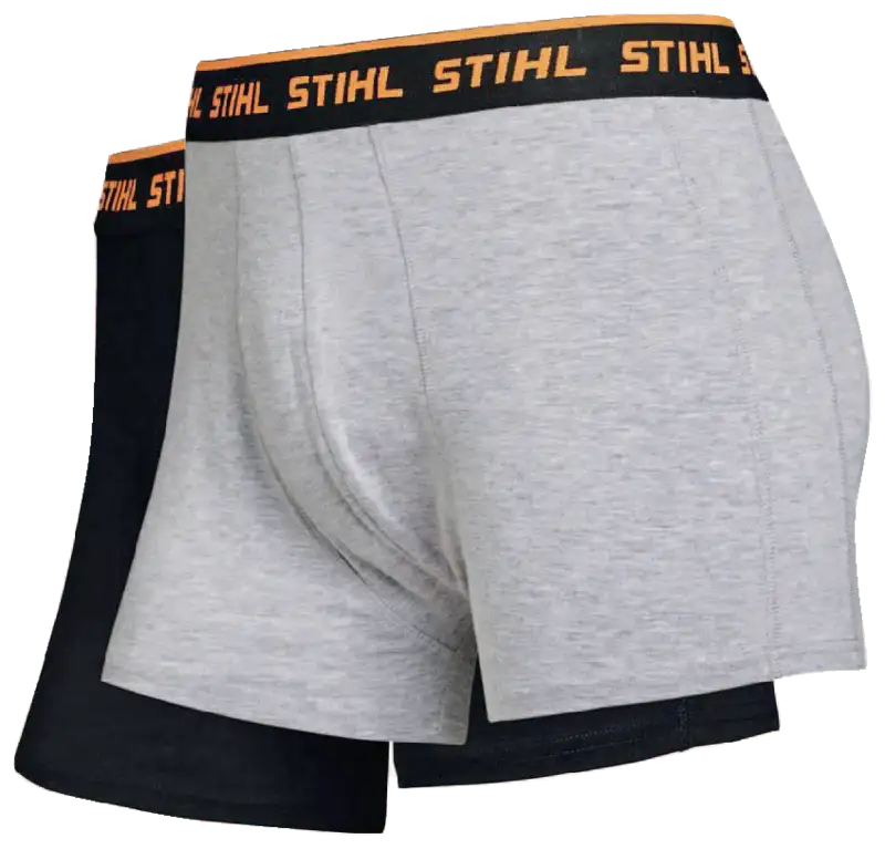 Le logo STIHL sur toute la largeur de la ceinture apporte une touche distinctive. Ces boxers ajustés sont livrés dans un lot de 2 pratique, dans les couleurs noir et gris.