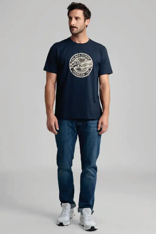 Le t-shirt à col rond 100 % coton offre un confort agréable et une coupe normale. Disponible en gris ou en bleu, il se combine facilement. Une discrète étiquette tissée « STIHL HERITAGE » au dos, en bas à droite, souligne le caractère authentique du t-shirt.
