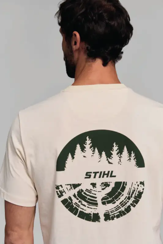 Le T-shirt STIHL TREE CIRCLE en gris/beige affiche clairement votre attachement à la nature. Au dos, un grand motif rond représentant un arbre avec le logo STIHL attire tous les regards. En complément, un discret imprimé « STIHL PRO NATURE » figure sur la poitrine, à gauche.
