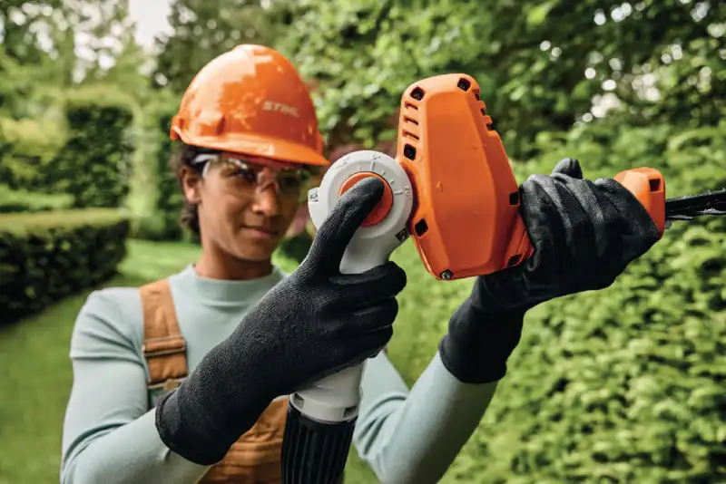 Le taille-haie fonctionne avec des batteries lithium-ion du système STIHL AS et séduit par son moteur silencieux et à faibles vibrations, qui vous permet de travailler sans protection auditive, même dans les zones sensibles au bruit. La poignée ergonomique avec revêtement Softgrip, la poignée circulaire et le manche télescopique réglable sans outil garantissent une manipulation simple et sûre.