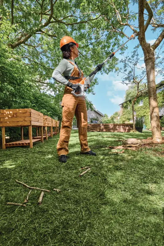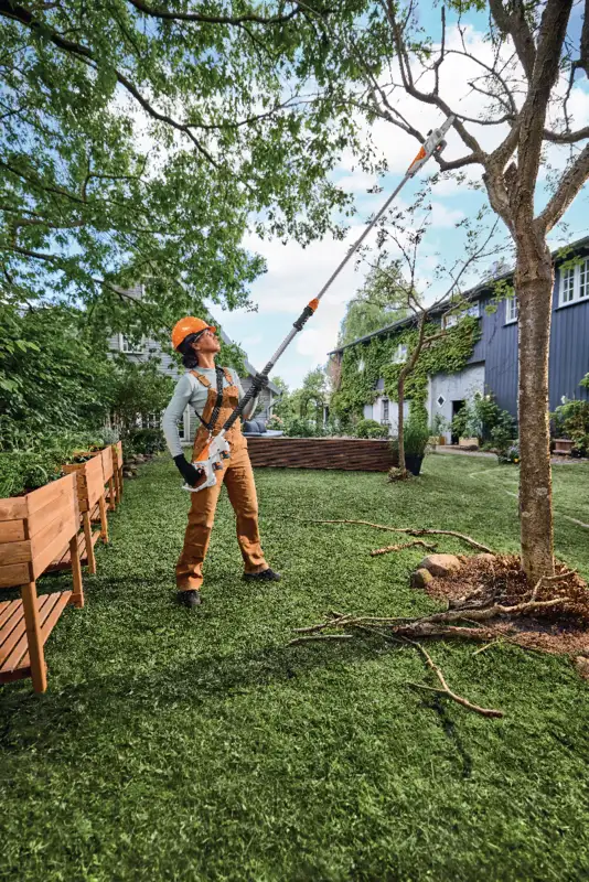 La sécateur à batterie STIHL HTA 30 vous aide de manière fiable à entretenir les arbres et les arbustes autour de votre maison et dans votre jardin. Grâce à son manche télescopique réglable sans outil et à son tension automatique de la chaîne, vous travaillez efficacement et confortablement – idéal pour élaguer les branches en hauteur ou pour éliminer le bois mort.