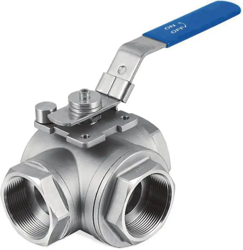 Valve à bill, type T 3 voies avec filetage intérieur, inox
