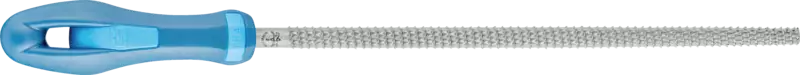 Pferd PF 1562, particulièrement adaptée pour l'usinage grossier du bois avec enlèvement de matière élevé et bonne élimination des copeaux. Lime ronde en pointe à taille de râpe circulaire. Manche ergonomique, forme E selon DIN 7263.