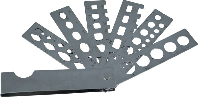 Calibre aux pierres précieuses, modèle de poche versatile, genre éventail en acier inoxydable. Pour mesurer toutes sortes de pierres de formes différentes: brillant, marquise, poire, carré, émeraude et ovale.