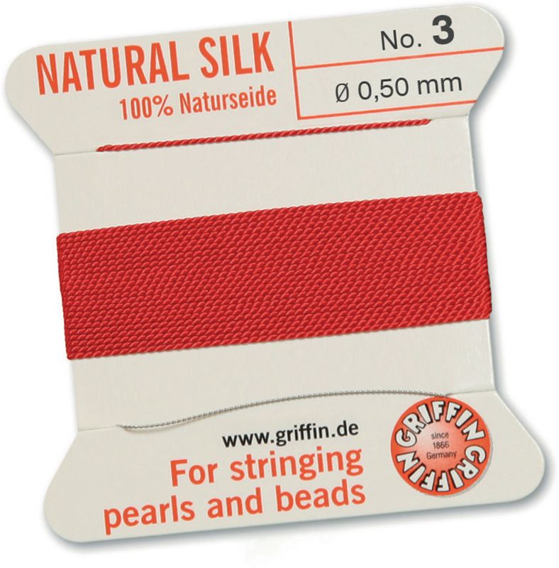 Soie à enfiler les perles avec enfileur. Pure soie. Lors de la commande, indiquer la référence et la taille du fil.
