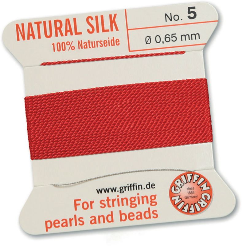 Soie à enfiler les perles avec enfileur. Pure soie. Lors de la commande, indiquer la référence et la taille du fil.