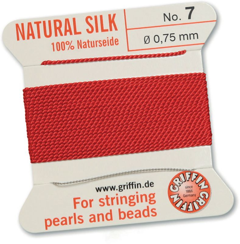 Soie à enfiler les perles avec enfileur. Pure soie. Lors de la commande, indiquer la référence et la taille du fil.