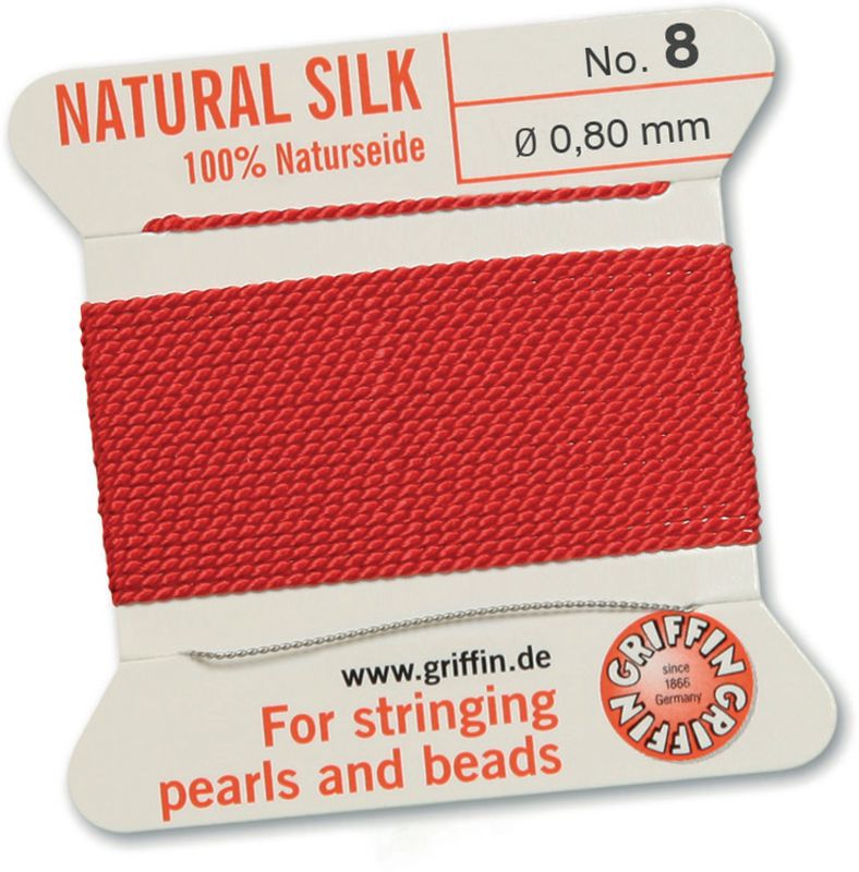 Soie à enfiler les perles avec enfileur. Pure soie. Lors de la commande, indiquer la référence et la taille du fil.