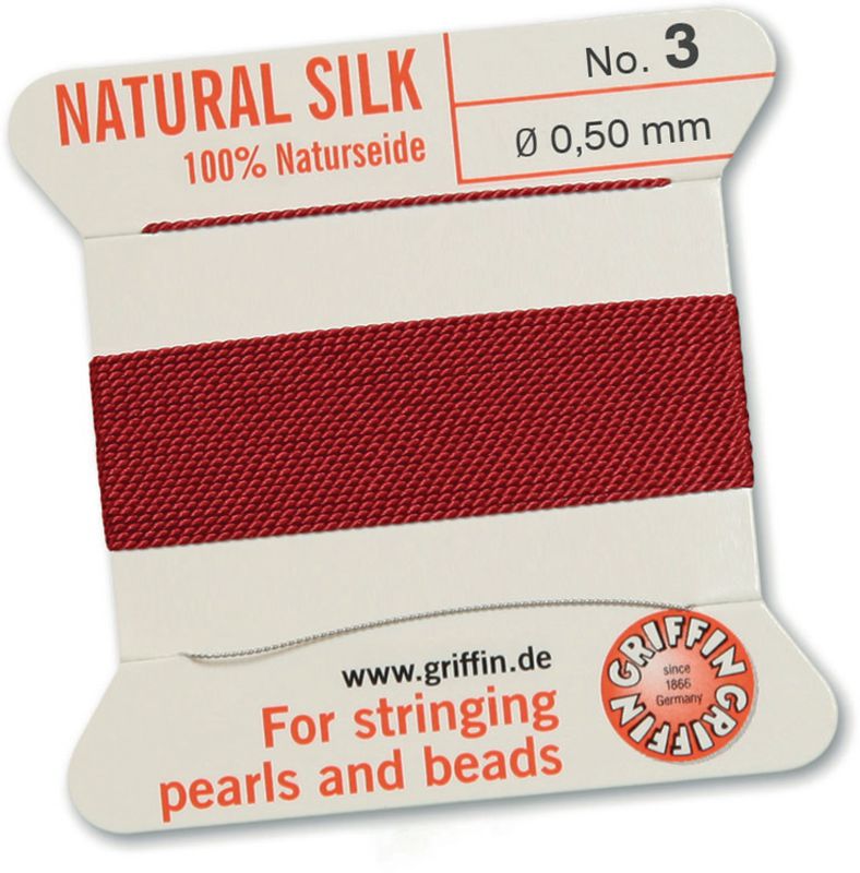 Soie à enfiler les perles avec enfileur. Pure soie. Lors de la commande, indiquer la référence et la taille du fil.