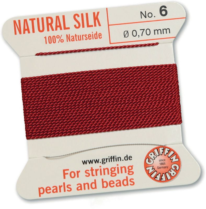 Soie à enfiler les perles avec enfileur. Pure soie. Lors de la commande, indiquer la référence et la taille du fil.