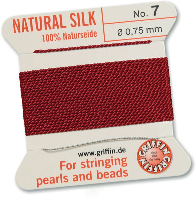 Soie à enfiler les perles avec enfileur. Pure soie. Lors de la commande, indiquer la référence et la taille du fil.