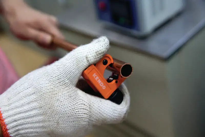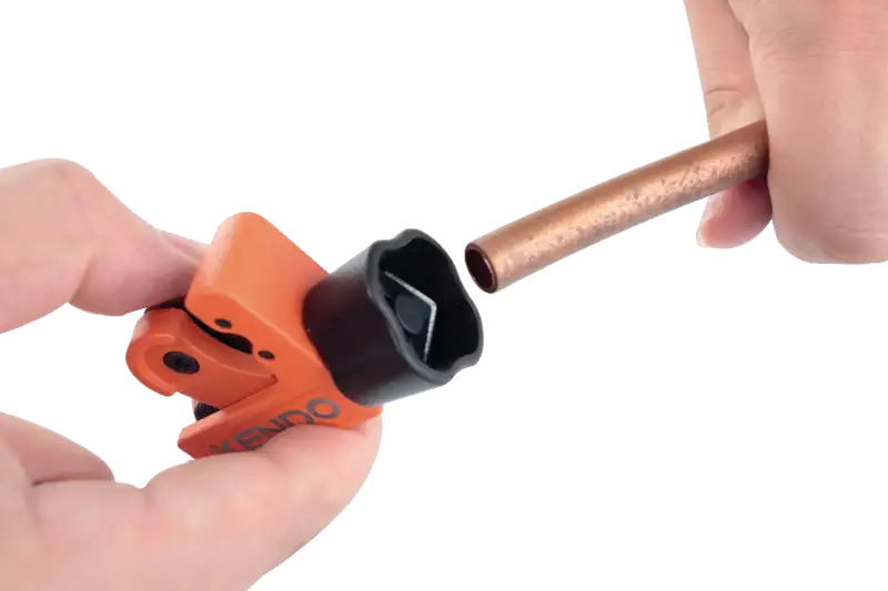 Le mini-coupe-tube KENDO est l'outil idéal pour réaliser des coupes précises sur des tubes en cuivre, en laiton, en aluminium et en acier à paroi mince. Grâce à sa conception compacte, il est parfait pour les travaux dans les espaces restreints, par exemple derrière des robinets, près des murs ou dans des installations difficiles d'accès.