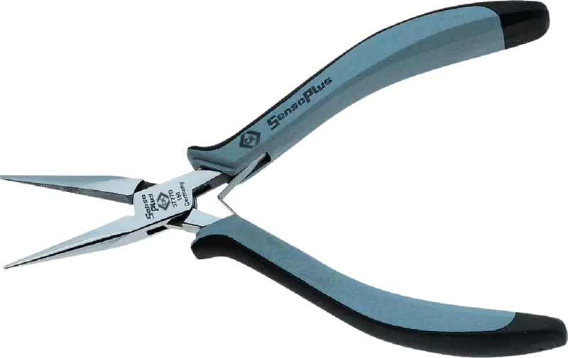 C.K. Sensoplus, acier spécial allié, estampé, trempé et revenu, poli miroir, joint entrepassé, manches ergonomiques bi-composants, conductrice d'électricité, dissipative, ressort d'ouverture, arêtes finement arrondies.