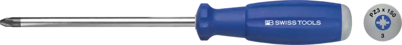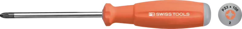 PB 8192 RB, pour vis avec cruciforme Pozidriv, DIN ISO 8764-1, acier chrome vanadium, avec manche ergonomique en 2 composants PB SwissGrip à surface Santoprene® antidérapante et maniable, pour des couples de serrage plus élevés.