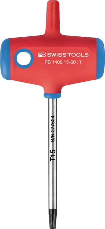 PB 1406, pour vis TORX®. La poignée transversale ergonomique tient parfaitement dans la main, maintient le poignet droit et permet de travailler sans se fatiguer. Pointe précise sur mesure, positionnement optimal dans les vis. Alliage spécial à base d'acier à ressort, élasticité exceptionnelle pour une excellente dureté.