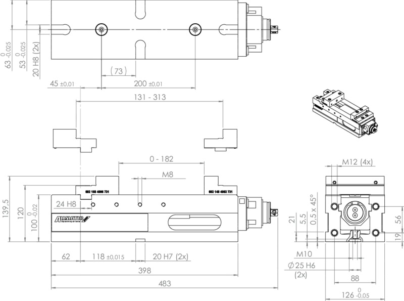 - De série avec alésage de positionnement de Ø 25H6 M10 pour systèmes de serrage point zéro ; entraxe 200 mm ± 0,01 mm
