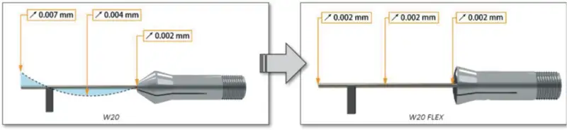 - Transmission du couple : La pince W-Flex assure une transmission efficace du couple pour les opérations d’usinage.