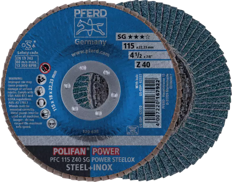PFERD Meules-éventails  POLIFAN Ø115, grain 60 (PFC 115 Z60 PSF STEELOX) - toolster.ch