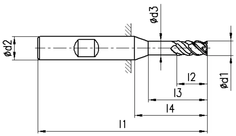 2820A, type N, K5-20FH, pas irrégulier, goujure au centre élargie, métal dur (MD), Ø 5-20 mm, revêtement TiAlN, angle d'hélice 50°, angle de coupe 10°, tolérance des arêtes de coupe ≤Ø 6 -0.02 ≥Ø 8 -0.04, avec méplat (HB), tolérance de queue h5, longue, coupe au centre, pas inégale, avec chanfrein d'angle, nombre de dents 4, DIN 6527L, HPC