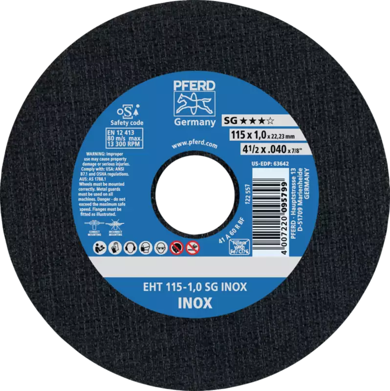 Exécution droite EHT (forme 41), abrasif en corindon haute performance A pour acier inoxydable (INOX). Pour la coupe de tôles, de profilés et de matériaux pleins. Outil puissant pour une coupe à froid, avec une capacité de découpe élevée et une bonne durée de vie.