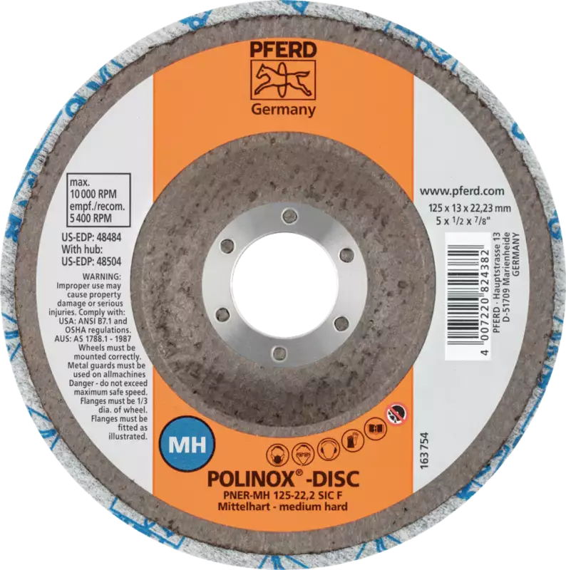 PFERD Meule abrasive compacte non tissée POLINOX DISC PNER-W 125-22,2 SIC F