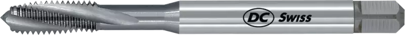 à goujures hélicoïdales 15°, SwissMade, acier super rapide (ASR) , filetage métrique fin ISO, filetage à droite, Tolérance ISO2 / 6H, filets d'entrée forme C (2-3 x P), queue cylindrique avec carré, nombre de dents 2-3
