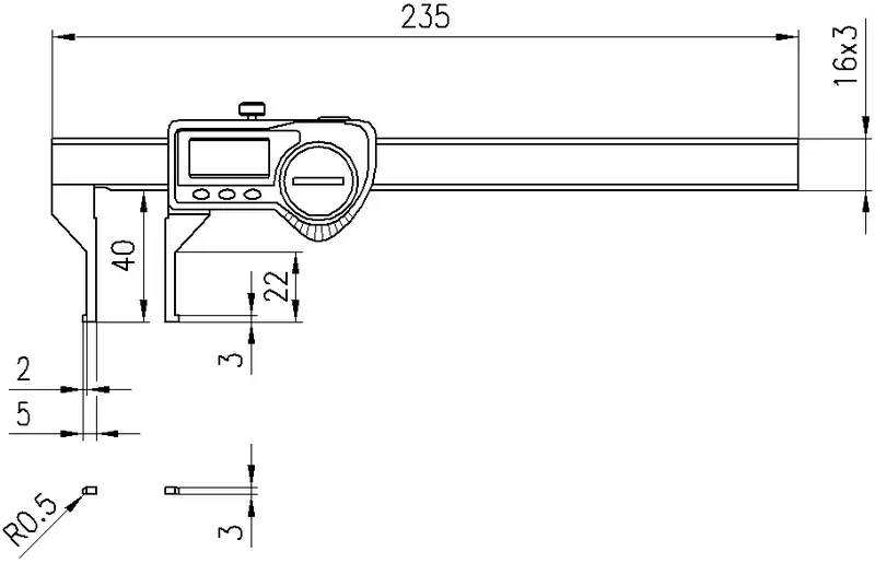 Affichage LCD contrasté et facile à lire Système de mesure inductif résistant à l'eau avec fonction Reference-Lock. Les faces de mesure sont rodées avec finesse.