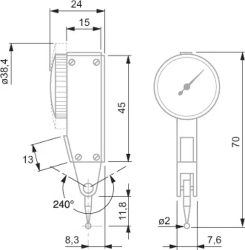 Livré en étui inclus touche de mesure M1.4 à bille en métal dur Ø 2 mm, support-indicateur Ø 8 mm, clé de montage de la touche.