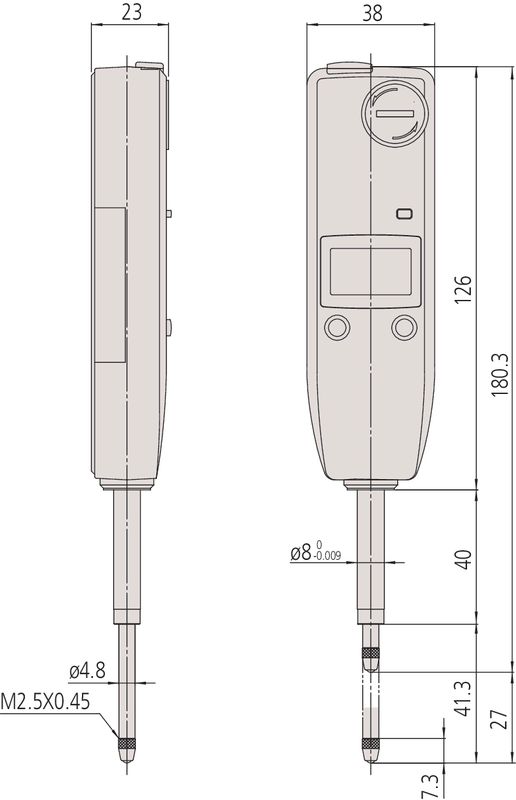 Série 575 - Comparateur de forme compact avec plage de mesure étendue et règle de mesure ABSOLUTE. Réglage unique de la position de départ, qui reste mémorisé jusqu'au prochain remplacement de pile. Même à une vitesse de déplacement élevée, la précision de mesure est garantie.