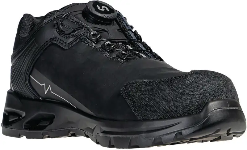 Cette chaussure de sécurité solide associe un excellent niveau de protection et un confort de port élevé. La coque composite stable offre une protection fiable contre les chocs et les blessures par pression, tandis que la tige en nubuck de qualité rend la chaussure résistante et flexible. La doublure respirante en mesh garantit une température agréable, même en cas de port prolongé. La semelle intérieure Hi-Poly offre un excellent amorti et permet une utilisation sans fatigue. La semelle durable en PU/PU garantit un maintien antidérapant et une résistance élevée à l'abrasion, idéale pour une utilisation dans divers environnements de travail. Le compagnon fiable pour votre sécurité et votre confort.
