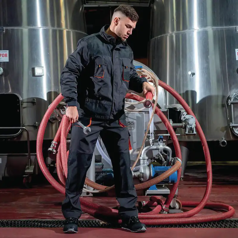 Ce pantalon de travail fonctionnel offre un confort optimal et des caractéristiques pratiques au quotidien. Il affiche une coupe droite et ample, et dispose d'une fermeture à glissière et de boutons. Les poches pratiques (deux poches avant, poche pour téléphone, poches arrière et latérale à fermeture auto-agrippante) offrent plusieurs options de rangement. Les genoux renforcés et la poche pour genouillères offrent une protection supplémentaire, tandis que la ceinture partiellement élastique assure une tenue confortable. Idéal pour les activités exigeantes.
