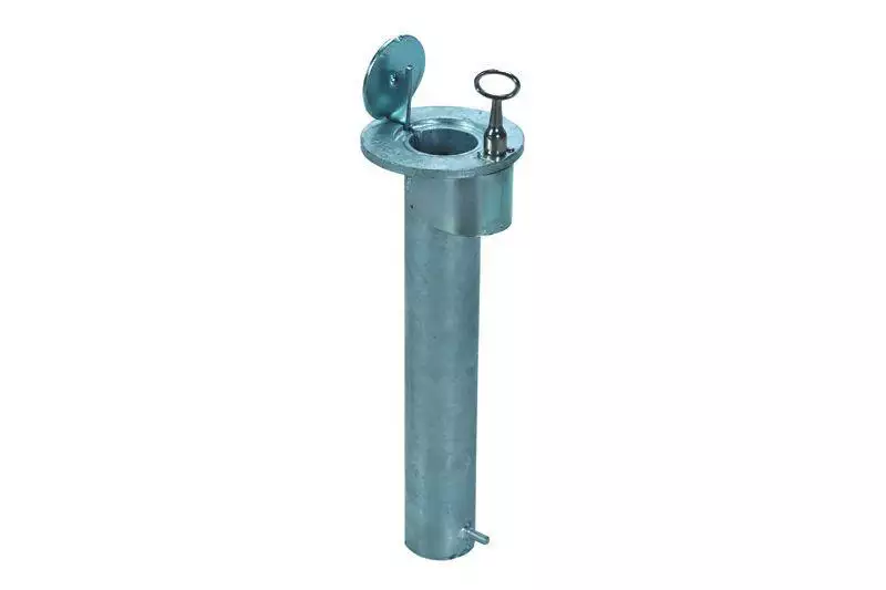 Pour poteau de barrage avec rainure, poteau verrouillable avec une clé triangulaire, zinguée, à sceller.